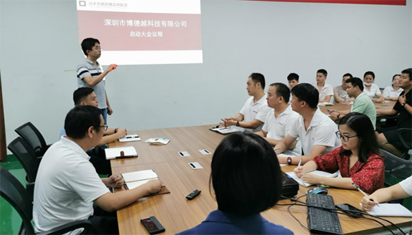 啟動會上,項目張老師首先對博德越對遠大方略的認可表示感謝,遠大方略服務過500強上市公司,也服務中小企業(yè),有非常強大專業(yè)的師資力量,覆蓋各個領域,幫助過各行各業(yè)的很多公司解決問題,走出困境,帶來持續(xù)的發(fā)展。博德越是非常優(yōu)秀的公司,公司領導具備獨特的戰(zhàn)略眼光,公司擁有良好的工作氛圍,此次改善主要是圍繞構建柔性生產方式,提升倉庫管理能力,優(yōu)化供應鏈,以及構建經營數(shù)據(jù)體系四大模塊進行,相信通過此次改善,博德越肯定會越來越好,經過博德越家人們的共同努力,一定會把這個家做大做強。