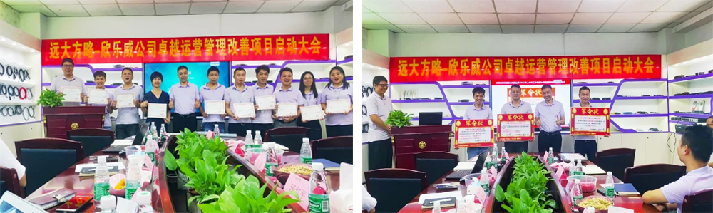 為了保證集成運(yùn)營(yíng)管理項(xiàng)目更好執(zhí)行落地,啟動(dòng)會(huì)上易總為遠(yuǎn)大方略項(xiàng)目組頒發(fā)了授權(quán)書(shū),授予項(xiàng)目組人事考核任免、薪資調(diào)整等權(quán)利,為集成運(yùn)營(yíng)改善項(xiàng)目組成員頒發(fā)任命書(shū),同時(shí)各部門(mén)簽署軍令狀,希望大家齊心協(xié)力共同推進(jìn)此次項(xiàng)目順利進(jìn)行。
