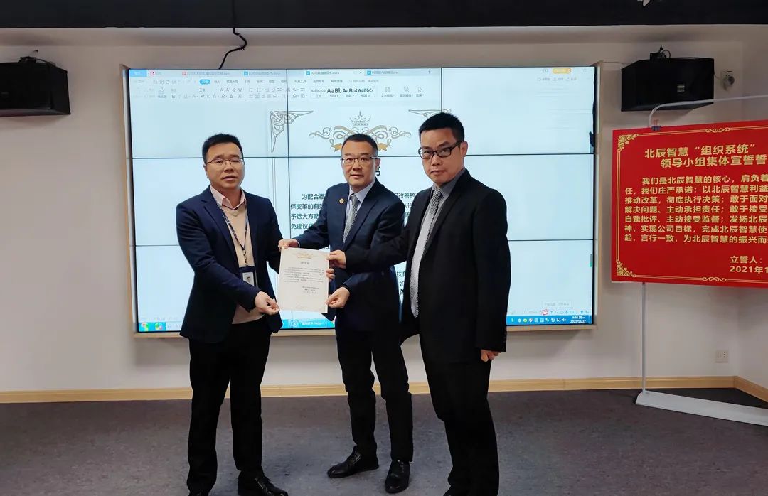啟動會最后,潘總給咨詢項(xiàng)目“變革領(lǐng)導(dǎo)小組”頒發(fā)了任命書,集體進(jìn)行了宣誓,大家信心滿滿,相信此次改善定能給北辰智慧帶來質(zhì)的改變。