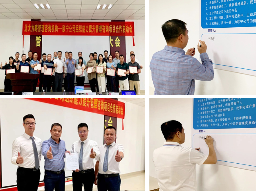 近日, 廣東順德歐寧科技電器有限公司(以下簡(jiǎn)稱“歐寧科技”)攜手遠(yuǎn)大方略啟動(dòng)《組織能力提升》咨詢項(xiàng)目。優(yōu)化公司組織架構(gòu),強(qiáng)化組織管理,升級(jí)員工思維,加強(qiáng)能力建設(shè),促進(jìn)生產(chǎn)管理效率,推動(dòng)企業(yè)業(yè)績(jī)持續(xù)增長(zhǎng)。
