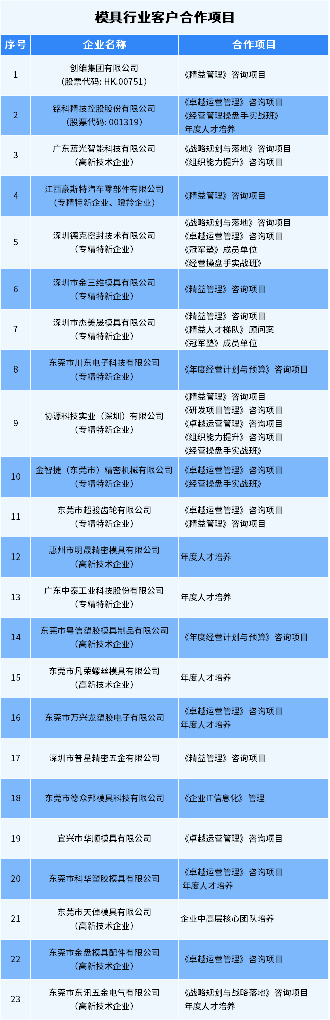 遠(yuǎn)大方略精準(zhǔn)剖析模具行業(yè)發(fā)展現(xiàn)狀和痛點(diǎn),為眾多模具企業(yè)賦能,持續(xù)開展針對(duì)性咨詢項(xiàng)目: