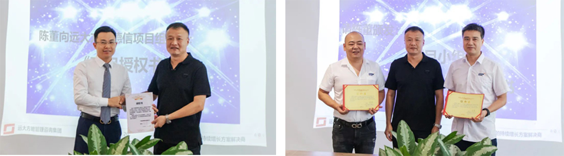 會(huì)上,陳董為遠(yuǎn)大方略項(xiàng)目組頒發(fā)了授權(quán)書,授予項(xiàng)目組相關(guān)管理權(quán)力;為項(xiàng)目相關(guān)負(fù)責(zé)人頒發(fā)任命書,全力推動(dòng)變革。