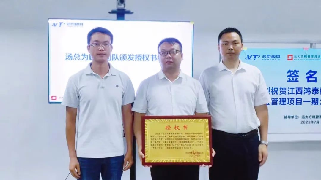 會(huì)上,湯總還為遠(yuǎn)大方略項(xiàng)目組頒發(fā)聘書和授權(quán)書授予項(xiàng)目組老師“獎(jiǎng)罰、人事任免建議以及薪資調(diào)整建議”等權(quán)力。