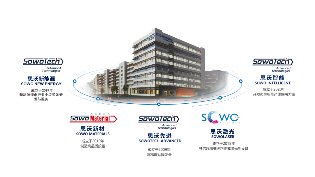 集團旗下?lián)碛懈呔荣N膜設(shè)備思沃先進裝備,開發(fā)柔性智能產(chǎn)線解決方案的思沃智能,開啟超精細線路無掩膜光刻設(shè)備的思沃激光,新能源鋰電設(shè)備思沃新能源,制造高品質(zhì)膠輥的思沃新材。