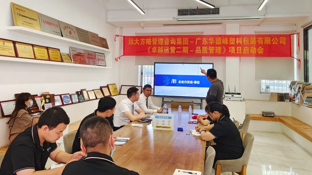 近日,廣東華德峰塑料包裝有限公司(以下簡稱“華德峰”)再度攜手遠大方略啟動《卓越運營二期-品質管理》咨詢項目,建立科學有效的質量管理體系,提升企業(yè)質量管理水平,提高產品質量,提高客戶滿意度,從而贏得市場份額。