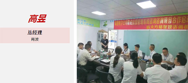 深圳高昱電子科技有限公司(以下簡稱“高昱電子”)攜手遠大方略啟動《精益生產(chǎn)與供應(yīng)鏈管理》改善項目。遠大方略項目經(jīng)理吳老師,遠大方略咨詢師魏老師入駐高昱電子,通過前期對高昱電子公司的深入調(diào)研與探討,本期項目主要圍繞經(jīng)營改善系統(tǒng)、組織建設(shè)、供應(yīng)鏈管理、精益生產(chǎn)四個模塊展開改善。