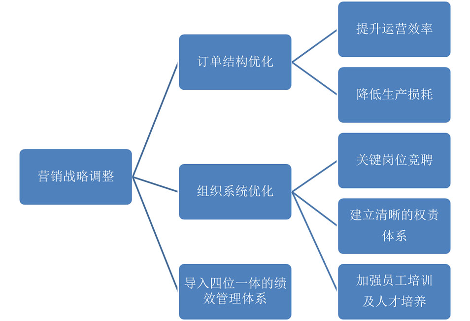 3、對營銷戰(zhàn)略進行梳理,并配套以訂單結(jié)構(gòu)優(yōu)化、組織系統(tǒng)優(yōu)化、績效體系導入,最終實現(xiàn)戰(zhàn)略營銷破局。