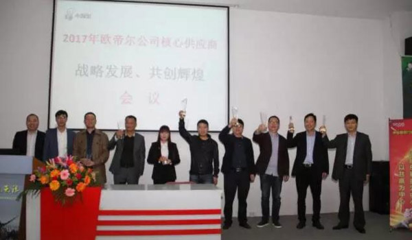 接下來,歐帝爾公司為核心供應商頒發(fā)了獎杯,感謝各核心供應商長期以來的支持和幫助,也期望2017年共建戰(zhàn)略聯(lián)盟、實現(xiàn)共贏!
