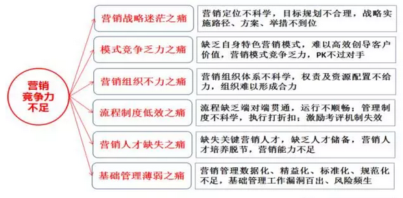 如何破解營銷管理的六大痛點(diǎn)?就需要結(jié)合企業(yè)的特點(diǎn)構(gòu)建起適合企業(yè)的營銷戰(zhàn)略和營銷模式,做好營銷戰(zhàn)略與模式的細(xì)節(jié)與過程管理,把營銷過程管理做到極致,通過過程管理的極致來保證結(jié)果目標(biāo)的實(shí)現(xiàn),做好結(jié)果與過程之間的有效分解與控制!