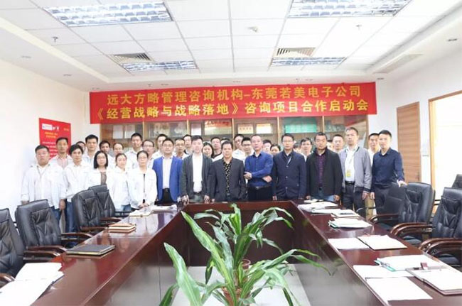 2018年3月22日,遠(yuǎn)大方略顧問(wèn)吳新民老師、宋增進(jìn)老師、歐陽(yáng)承喜老師聯(lián)袂進(jìn)駐東莞市若美電子科技有限公司(以下簡(jiǎn)稱“若美電子”),與企業(yè)中高層管理團(tuán)隊(duì)20多人展開《經(jīng)營(yíng)戰(zhàn)略與戰(zhàn)略落地》咨詢項(xiàng)目的深度研討,共同探討企業(yè)發(fā)展的新機(jī)遇。