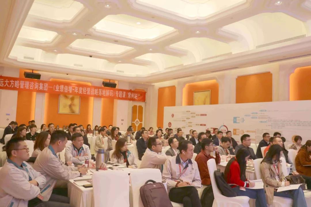 2019年11月15日—16日,遠大方略《業(yè)績倍增---年度經(jīng)營戰(zhàn)略落地解碼》全國巡講課第二站,在常州白金漢爵大酒店開講。現(xiàn)場齊聚長三角100+位企業(yè)董事長、總經(jīng)理、各事業(yè)部副總等參與本次課程學(xué)習(xí)探討。