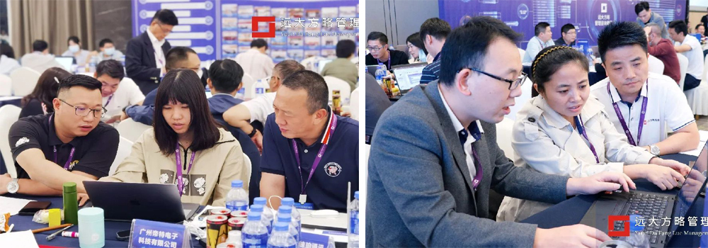 課程中,老師全程開啟巡場模式,輪流到各小組輔導(dǎo)學(xué)員制定適合自己企業(yè)的經(jīng)營分析報告、業(yè)務(wù)報告、部門年度經(jīng)營計劃書、企業(yè)戰(zhàn)略地圖等實(shí)用報表。還為大家提供了差距分析、SWOT分析、PESTEL分析、商業(yè)畫布、波特價值鏈分析等實(shí)用工具和使用方法。幫助現(xiàn)場企業(yè)家建立了貫穿戰(zhàn)略制定和執(zhí)行全流程的企業(yè)經(jīng)營思維,收獲了一套戰(zhàn)略落地執(zhí)行的系統(tǒng)方案。