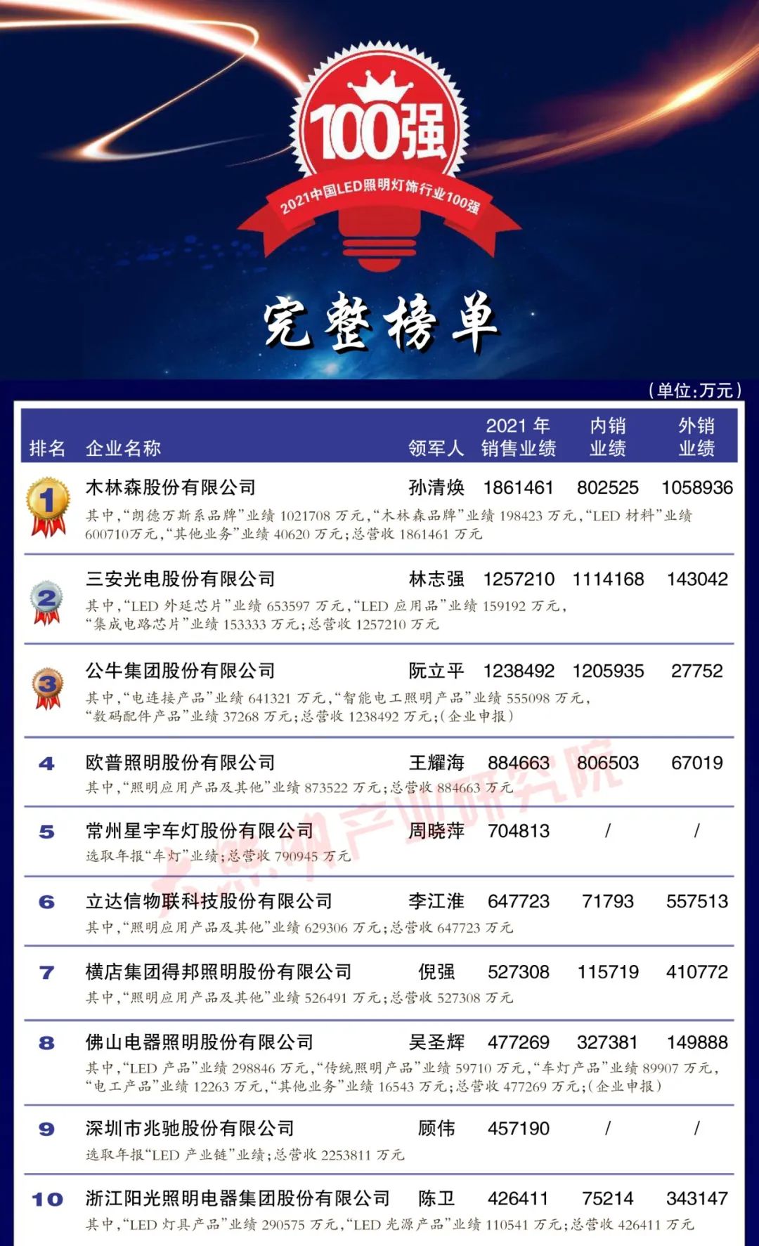 2021年中國(guó)照明燈具排行榜顯示,上榜100強(qiáng)企業(yè)2021年總銷售業(yè)績(jī)?yōu)?791.2億元,同比上年降低了240.67億元;百強(qiáng)企業(yè)入圍門檻為2.45億元,同比上年降低了0.08億元。