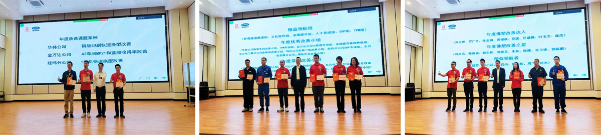 表彰先進(jìn)樹(shù)標(biāo)桿,凝心聚力謀新篇。會(huì)議上對(duì)在一期精益管理項(xiàng)目中表現(xiàn)優(yōu)異的團(tuán)隊(duì)及個(gè)人進(jìn)行了表彰,鼓勵(lì)全體佛塑精益人再接再厲,精益求精,不斷前進(jìn)。