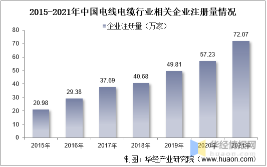 隨著我國電線電纜行業(yè)的快速發(fā)展,行業(yè)新增企業(yè)數量不斷增長。據資料顯示,截至2021年底,我國電線電纜行業(yè)相關企業(yè)注冊量達72.07萬家,同比增長25.9%。