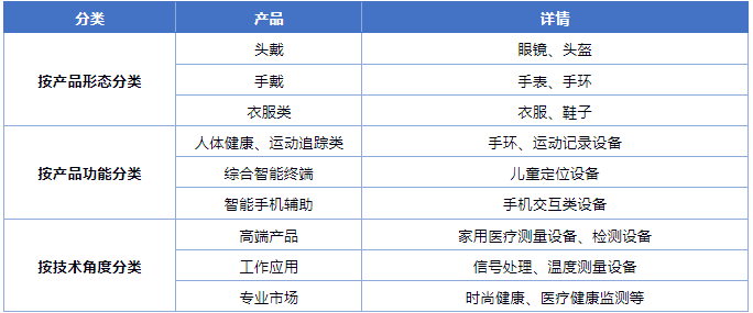 智能穿戴設(shè)備是指將智能和先進技術(shù)整合到手表、珠寶等可穿戴對象中,具體產(chǎn)品包括智能手表、VR耳機、健身追蹤器、智能腕帶、智能珠寶、運動手表、可植入設(shè)備等。