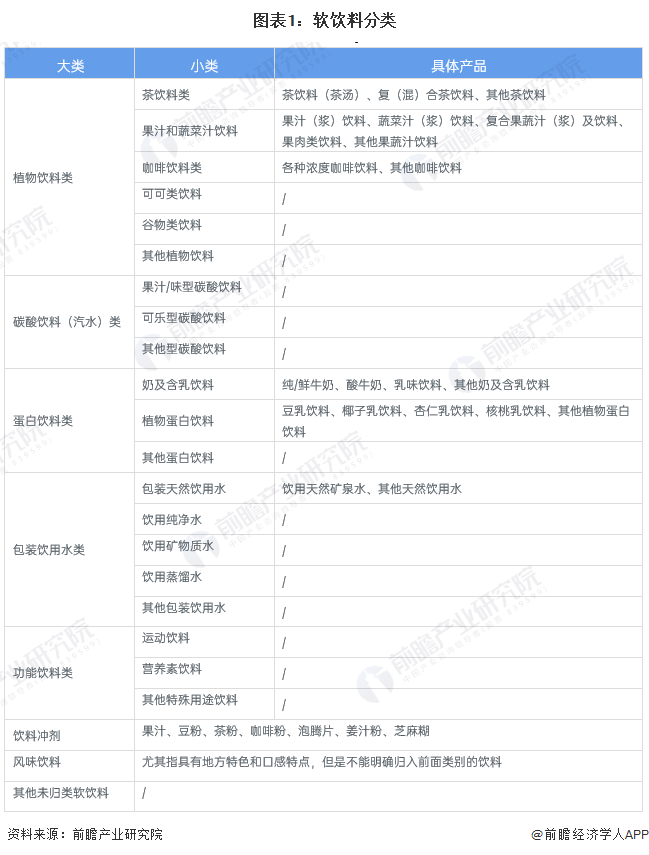 我國軟飲料行業(yè)經(jīng)過40余年的發(fā)展,形成了產(chǎn)品種類繁多,品牌數(shù)目龐大的產(chǎn)品體系,從產(chǎn)品屬性類別上劃分,中國軟飲料行業(yè)可以劃分為如下多種細(xì)分市場(chǎng)。不同的產(chǎn)品具有其獨(dú)特的屬性,符合各種人群的特殊需求,無論男女老少,總有自己中意的產(chǎn)品和品牌。