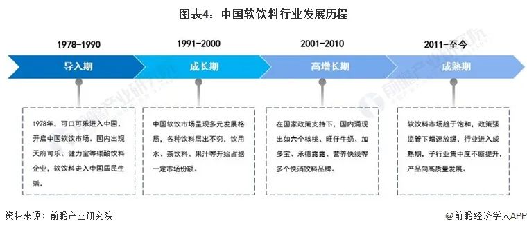 國內(nèi)軟飲料市場(chǎng)起步于1978年可口可樂進(jìn)入中國,經(jīng)過起步階段、成長階段、高增長期等多個(gè)階段,市場(chǎng)規(guī)模不斷擴(kuò)大、品類不斷擴(kuò)寬,目前已經(jīng)成為全球最大的軟飲料市場(chǎng)之一。在軟飲料行業(yè)的發(fā)展過程中,本土軟飲料企業(yè),如農(nóng)夫山泉、康師傅、怡寶等不斷壯大,逐漸具備與國際大品牌抗衡的能力,牢牢占據(jù)中國軟飲料市場(chǎng)的核心位置。