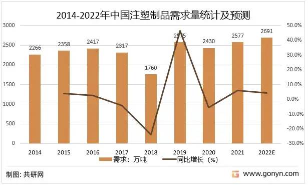2014-2022年中國注塑制品需求量統(tǒng)計及預測