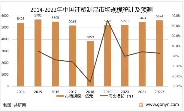 2014-2022年中國注塑制品市場規(guī)模統(tǒng)計及預測