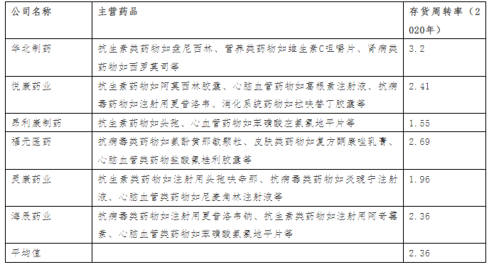 醫(yī)藥制造行業(yè)的存貨普遍較大,經(jīng)對(duì)比研究上市公司2020年公開數(shù)據(jù),得出結(jié)論醫(yī)藥制造行業(yè)平均存貨周轉(zhuǎn)率在2-3之間(按產(chǎn)品細(xì)分領(lǐng)域不同可能存在一定差異)。