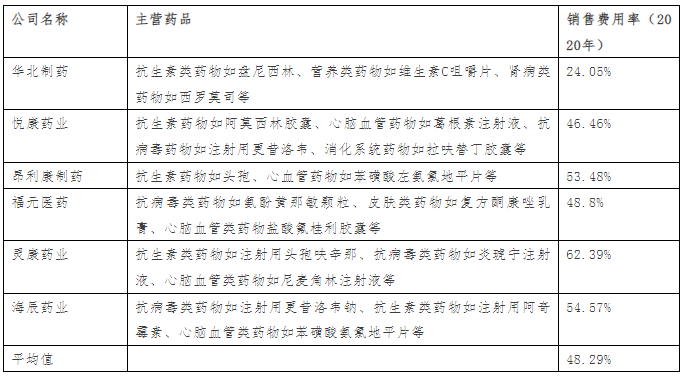 在醫(yī)藥制造行業(yè)中營(yíng)銷極為重要,由于兩票制政策的出臺(tái),目前大部分藥品的營(yíng)銷費(fèi)用都由藥企承擔(dān),并通過(guò)業(yè)務(wù)推廣費(fèi)體現(xiàn)。經(jīng)對(duì)比研究上市公司2020年公開數(shù)據(jù),得出結(jié)論醫(yī)藥制造行業(yè)平均銷售費(fèi)用率(銷售費(fèi)用/營(yíng)業(yè)收入)在40%-60%之間(按產(chǎn)品細(xì)分領(lǐng)域不同可能存在一定差異)。
