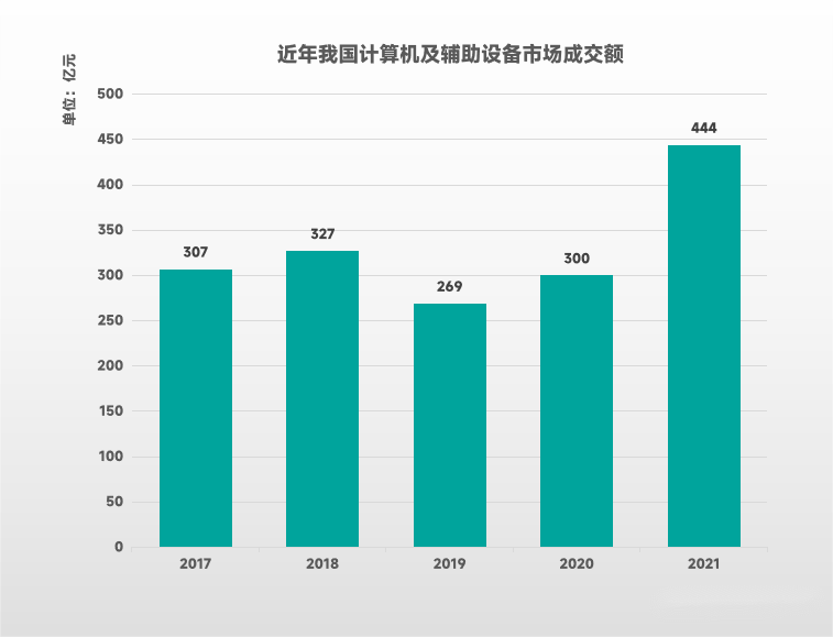 計算機作為一個大類,在我國3C市場銷售額中占比并不高,2017-2020年基本維持在300億元左右。但與市場規(guī)模巨大的家電市場不同,計算機類產(chǎn)品自身遠程、無接觸的特性,使其在疫情期間逆勢增長,2019-2021年市場成交額連續(xù)上漲,從269億元增至444億元,增長率達65%以上。特別是便攜易用的筆記本電腦貢獻了大部分市場增量,例如我國2021年個人PC(不含平板電腦)出貨量達5710萬臺,其中筆記本電腦出貨量為3650萬臺+,占比約64%,已成為當代國民辦公、娛樂首選設(shè)備之一。