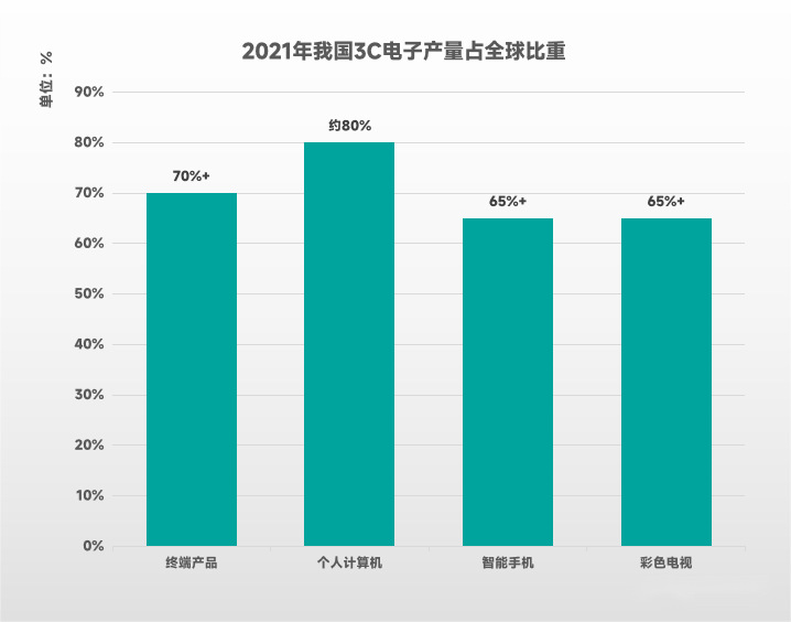 我國不僅是世界最主要的3C產(chǎn)品消費國之一,更是尤為重要的3C產(chǎn)品制造基地。據(jù)工信部統(tǒng)計數(shù)據(jù),2021年我國3C終端產(chǎn)品的產(chǎn)量占全球比重超過70%。其中,個人計算機、智能手機、彩電等重要3C產(chǎn)品的產(chǎn)量皆處于世界首位,一些中國自主品牌更是在發(fā)達國家占據(jù)市場份額前列,在滿足國內(nèi)龐大需求的同時,也積極向海外市場輸出質(zhì)優(yōu)價廉的中國制造3C產(chǎn)品,充分展現(xiàn)了“世界工廠”無與倫比的強大生產(chǎn)力。在近年部分細分品類內(nèi)需不足的情況下,加強對外出口或?qū)⒊蔀樾袠I(yè)新的重要增長點。