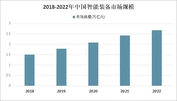 智能裝備制造業(yè)是智能裝備的中游產(chǎn)業(yè),近年來中國智能裝備市場規(guī)模增長迅速。智能裝備制造業(yè)是為工業(yè)生產(chǎn)體系和國民經(jīng)濟各行業(yè)直接提供技術(shù)設(shè)備的戰(zhàn)略性產(chǎn)業(yè)。目前已初步形成以自動化生產(chǎn)線、智能檢測與裝配裝備、智能控制系統(tǒng)、工業(yè)機器人等為代表的產(chǎn)業(yè)體系,產(chǎn)業(yè)規(guī)模日益增長。數(shù)據(jù)顯示,2018年我國智能制造裝備市場規(guī)模超過1.51萬億元,2020年市場規(guī)模突破2萬億元。2022年智能裝備市場規(guī)模繼續(xù)擴大,截至2022年末,中國智能裝備市場規(guī)模為35.76億元,較上年同比增加8.43%。