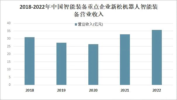 新松機器人股份有限公司是智能裝備企業(yè)龍頭企業(yè)之一,其智能裝備業(yè)務(wù)主要圍繞公司機器人核心產(chǎn)品領(lǐng)域所形成的自動化產(chǎn)線應(yīng)用,主要包括焊接自動化、裝配自動化和物流自動化。2021年由于“十四五”政策,國家大力支持發(fā)展智能裝備制造,2022年新松機器人智能裝備業(yè)務(wù)營業(yè)收入繼續(xù)增加,營業(yè)收入為35.72億元,較2021年同比增長8.42%。