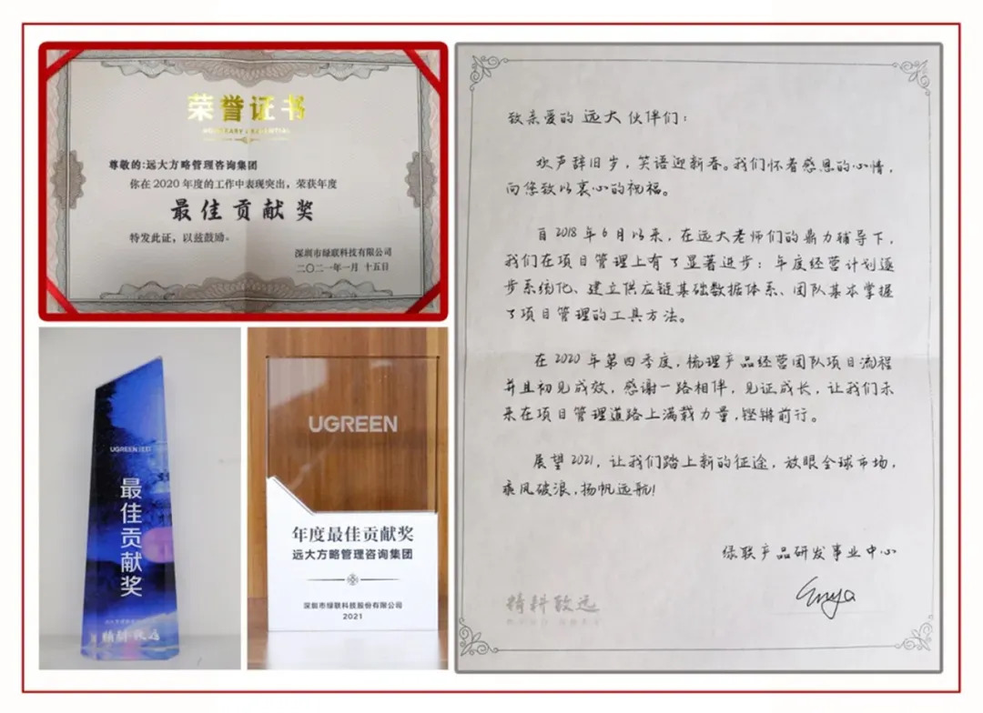 2018年,綠聯(lián)科技正處于高速發(fā)展期,為進(jìn)一步深化基礎(chǔ)管理,夯實(shí)企業(yè)發(fā)展內(nèi)功,綠聯(lián)科技引進(jìn)咨詢公司,因此與遠(yuǎn)大方略結(jié)緣,至此達(dá)成長(zhǎng)期戰(zhàn)略合作。2018年至今,綠聯(lián)科技與遠(yuǎn)大方略連續(xù)合作6年,先后合作10期咨詢項(xiàng)目。