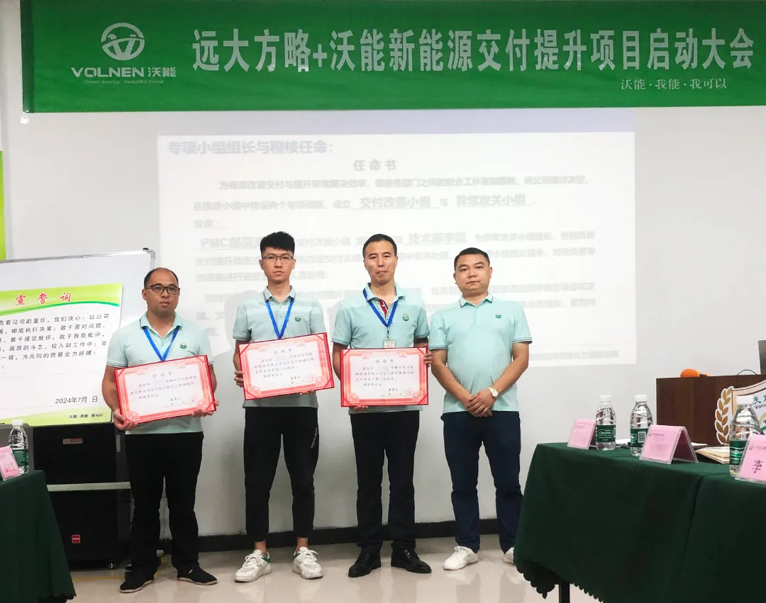 為確保項(xiàng)目順利推進(jìn),更有效發(fā)揮各部門(mén)職能,會(huì)上劉董任命交付提升推進(jìn)組組長(zhǎng),并頒發(fā)聘書(shū),同時(shí)為遠(yuǎn)大方略項(xiàng)目組頒發(fā)授權(quán)書(shū),授予項(xiàng)目管理權(quán),全力推進(jìn)此次項(xiàng)目。
