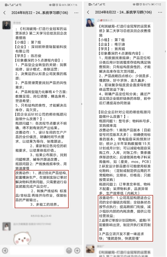 課程案例部分的痛點(diǎn)、問題點(diǎn)與現(xiàn)場(chǎng)的解決方法與我們公司的實(shí)際情況高度契合。認(rèn)識(shí)到運(yùn)營(yíng)系統(tǒng)對(duì)企業(yè)的重要性,我們要足夠的重視;重構(gòu)運(yùn)營(yíng)系統(tǒng)將給公司帶來(lái)質(zhì)的改變,通過老師課堂上講授的方法,我們回去要重新梳理運(yùn)營(yíng)的流程、問題點(diǎn)并及時(shí)給以解決。