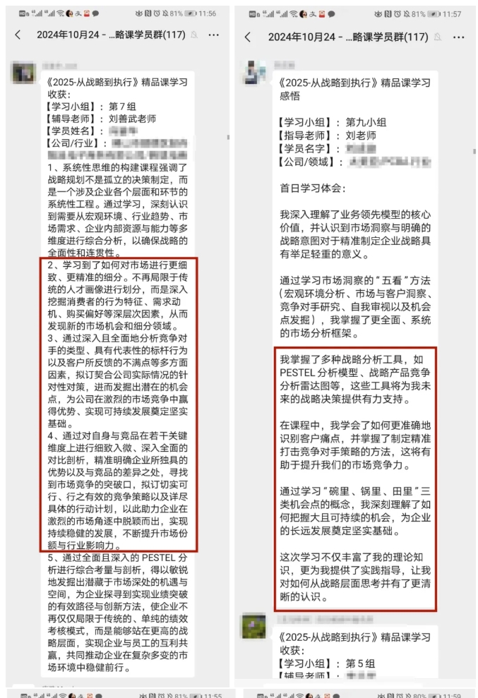 參加此次課程的學(xué)員超百人,來(lái)自不同行業(yè)不同企業(yè)的企業(yè)家、高管,更有部分企業(yè)組團(tuán)前來(lái)學(xué)習(xí),剖析差距原因,識(shí)別增長(zhǎng)機(jī)會(huì),達(dá)成戰(zhàn)略共識(shí),助力企業(yè)長(zhǎng)效增長(zhǎng)。白天的高能課程讓企業(yè)受益匪淺,結(jié)束一天的課程之后,企業(yè)老板都自發(fā)的帶著自己的團(tuán)隊(duì)留下來(lái)繼續(xù)深化企業(yè)的戰(zhàn)略方案,從而實(shí)現(xiàn)從0到1的戰(zhàn)略規(guī)劃落地。