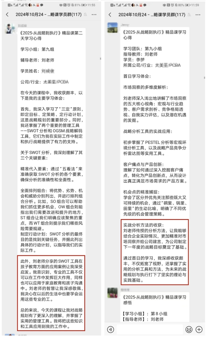 戰(zhàn)略是企業(yè)業(yè)務(wù)運(yùn)行的火車頭,有清晰的戰(zhàn)略才能確保我們有共同的方向,但所謂知易行難,只有可落地、可執(zhí)行的戰(zhàn)略才是真正的戰(zhàn)略。這也是本次課程的一大亮點(diǎn),重實(shí)操,重落地,讓每一位學(xué)員回到企業(yè)都能夠制定一套適合企業(yè)的戰(zhàn)略方案。三天的學(xué)習(xí)全程高能,課程實(shí)用、可落地性強(qiáng),獲得學(xué)員一致好評(píng)。