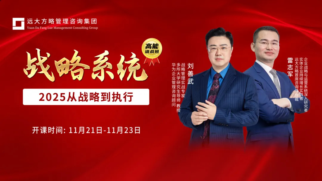 為幫助企業(yè)贏戰(zhàn)2025,10月24日-26日,遠(yuǎn)大方略特邀華為企業(yè)管理咨詢顧問(wèn)劉善武老師,為大家?guī)?lái)了為期三天的《戰(zhàn)略系統(tǒng)-2025從戰(zhàn)略到執(zhí)行》課程,重新理解和審視戰(zhàn)略,幫助更多企業(yè)保持方向大致正確,高效落地執(zhí)行,跑上極速增長(zhǎng)快車道。