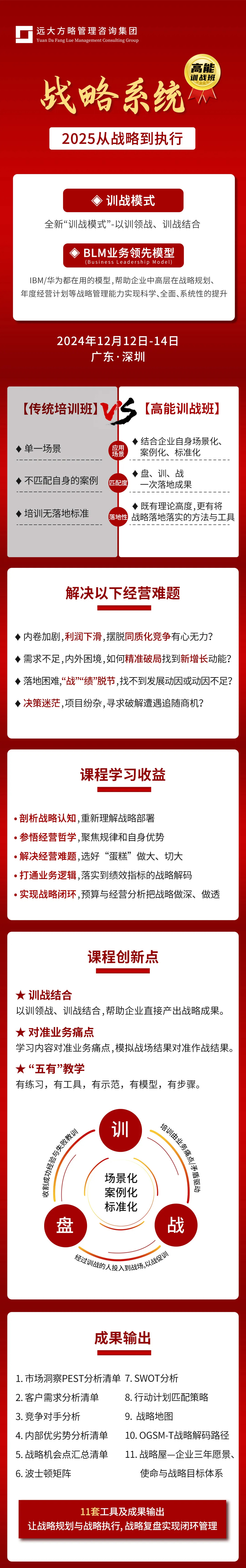 12月12日-14日《戰(zhàn)略系統(tǒng)-2025從戰(zhàn)略到執(zhí)行》高能訓戰(zhàn)班