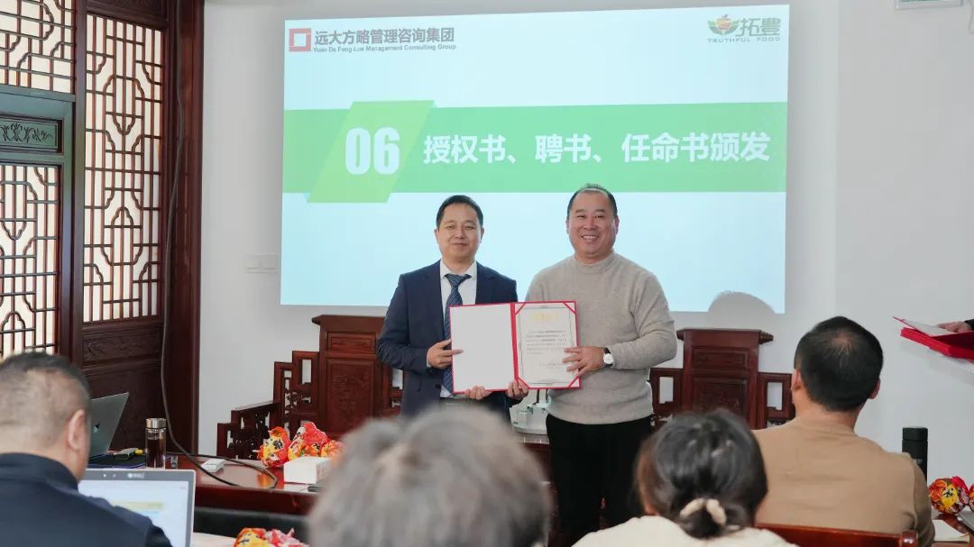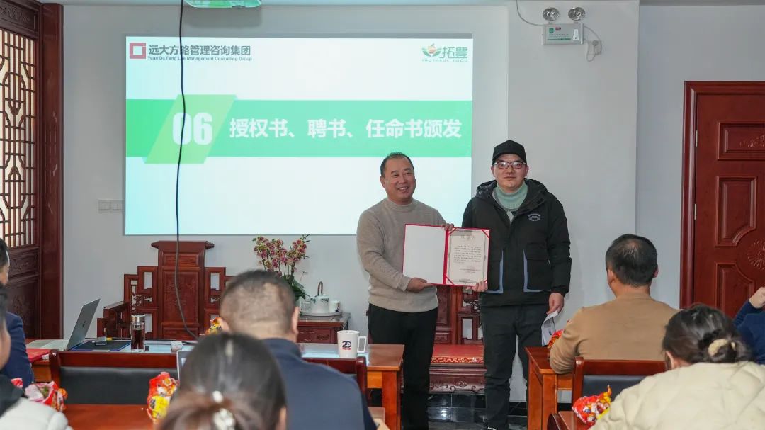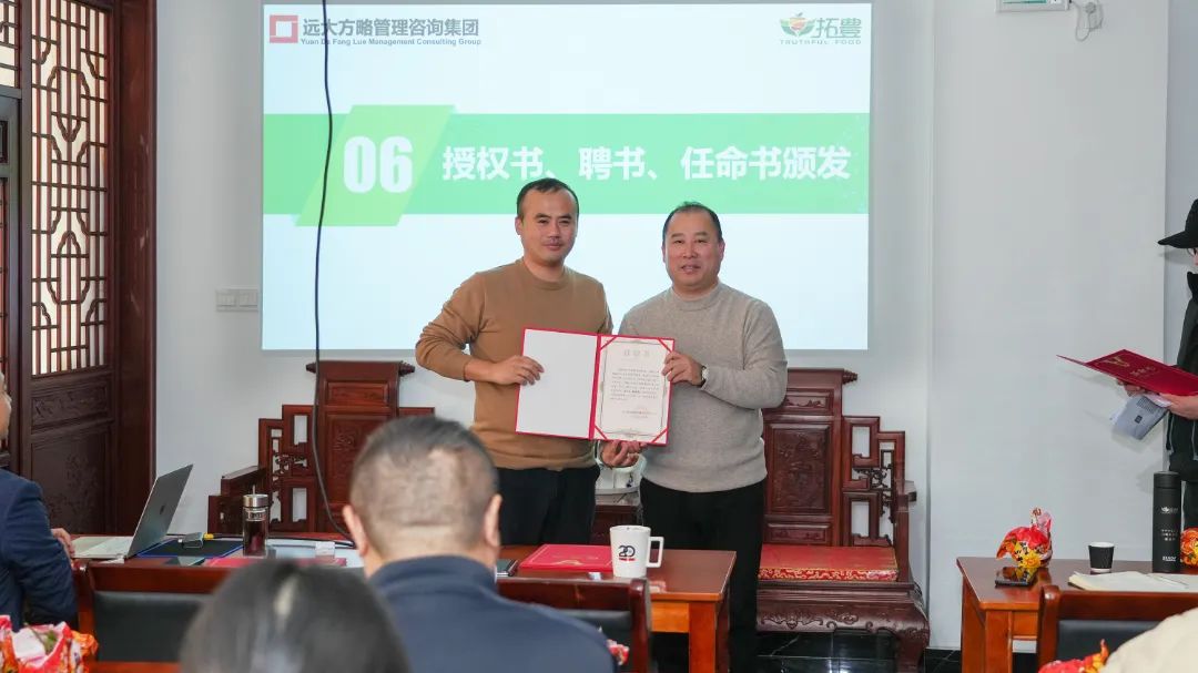為了進一步加強項目組的權(quán)威性和執(zhí)行力,拓豐樸道領(lǐng)導(dǎo)為遠大方略項目組頒發(fā)了授權(quán)書,授予老師項目管理權(quán),同時,還為拓豐樸道項目組成員頒發(fā)任命書,明確了各成員的職責(zé)與使命,進一步強化了項目團隊的執(zhí)行力和領(lǐng)導(dǎo)力,為此次項目改善提供了有力的組織保障。