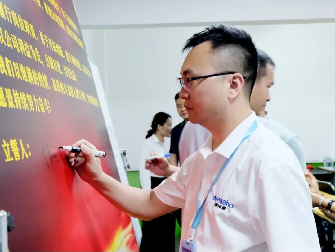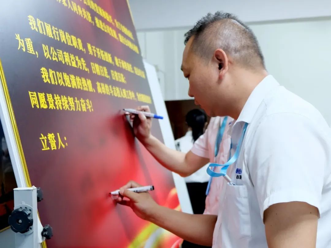會上,萬總為項目老師頒發(fā)了授權(quán)書和聘書,帶領(lǐng)項目關(guān)鍵人員在誓詞上簽字并集體宣誓,鼓勵大家和公司共同成長進步。