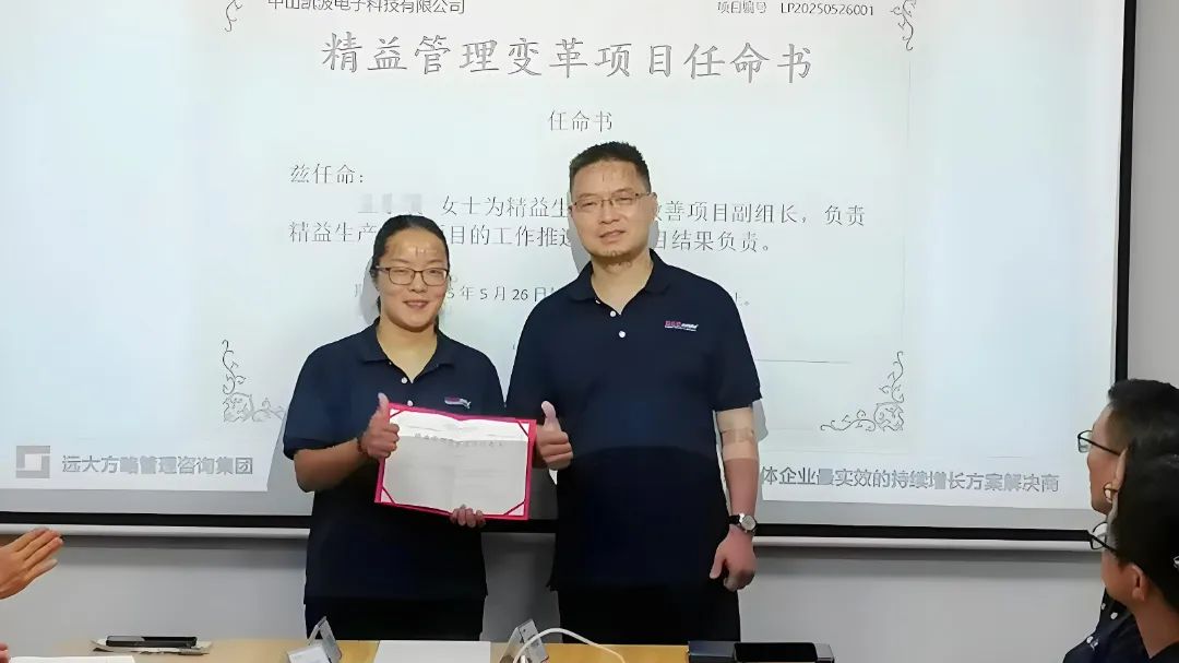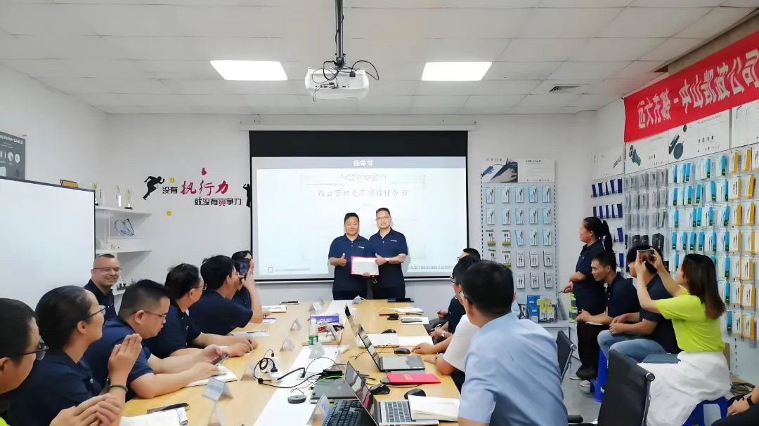 為促進(jìn)項(xiàng)目的有效落地,此次改善還成立了專(zhuān)項(xiàng)改善小組,明確各崗位職責(zé),強(qiáng)化責(zé)任意識(shí),會(huì)上王總為遠(yuǎn)大方略顧問(wèn)團(tuán)頒發(fā)授權(quán)書(shū),為精益改善小組成員頒發(fā)了任命書(shū)。