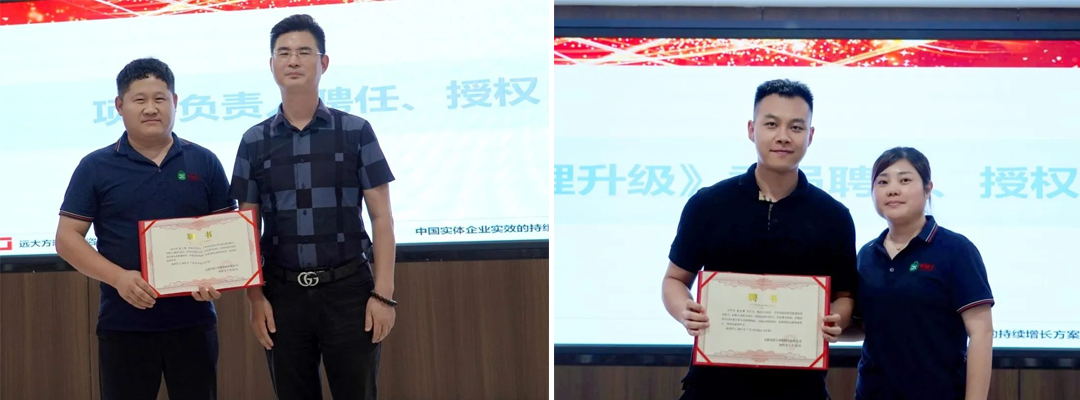會上,潘總和李總對遠大方略項目組進行了聘用授權,為項目小組關鍵人員頒發(fā)了聘書,并簽訂誓言集體宣誓,鼓勵大家全力以赴投身變革,共同創(chuàng)造更具競爭力的企業(yè)。