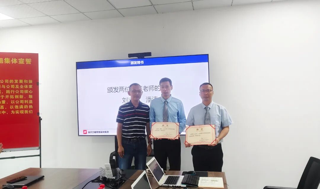 為促進(jìn)項目的有效落地,明確各崗位職責(zé),強(qiáng)化責(zé)任意識,會上陳總為遠(yuǎn)大方略項目組頒發(fā)授權(quán)書,為項目組老師頒發(fā)了聘書。
