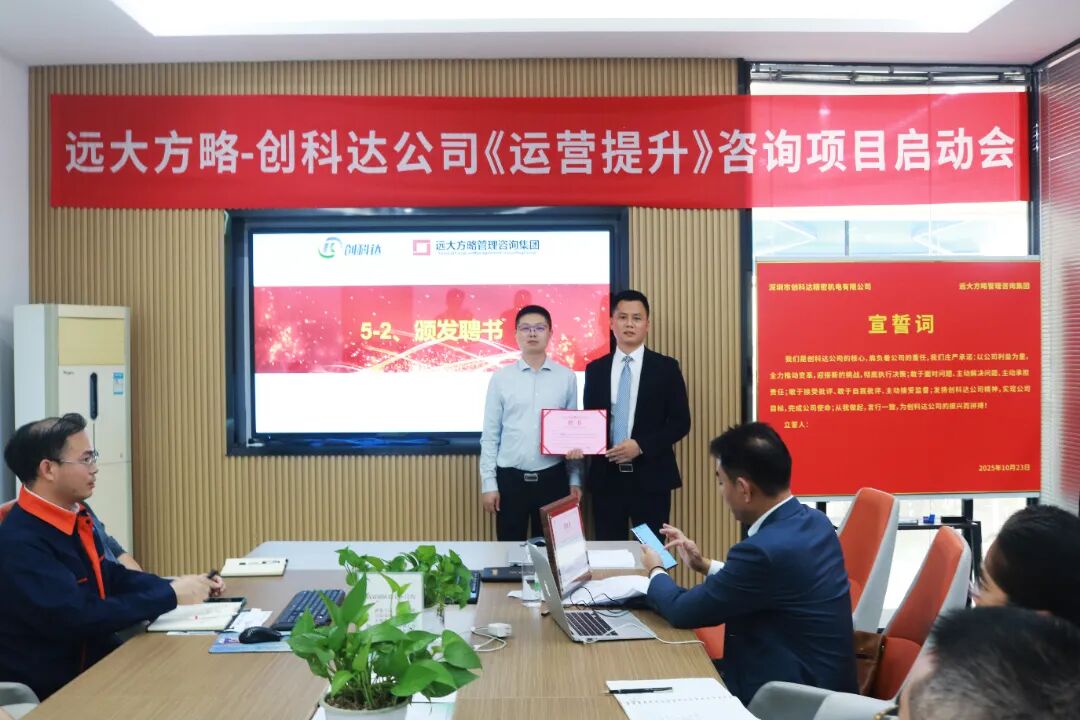 創(chuàng)科達是一家以技術(shù)為核心驅(qū)動力的自動化設備生產(chǎn)商,在行業(yè)內(nèi)有著自身的技術(shù)優(yōu)勢與發(fā)展特色。此前,雙方通過彼此了解以及深入的調(diào)研分析,精準地找到了合作的價值契合點。這個契合點不僅契合雙方的發(fā)展戰(zhàn)略,更能為彼此帶來新的發(fā)展機遇?;诖?,白總對此次合作滿懷憧憬與信心。他堅信,在遠大方略老師的專業(yè)加持下,通過雙方深度協(xié)作,一定會形成強大的發(fā)展合力,推動公司在未來實現(xiàn)全方位、高質(zhì)量的發(fā)展。