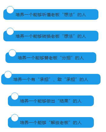 讓老板走出去,花更多的時(shí)間去研究市場、研究產(chǎn)品方向。讓操盤手具有自主經(jīng)營意識思維的人,不管老板在與不在公司,都能讓企業(yè)正常運(yùn)營,推動(dòng)處理跨部門的事情;為將來企業(yè)做大做好準(zhǔn)備;使公司戰(zhàn)略可真正的落地執(zhí)行。通過訓(xùn)練,提升操盤手解決問題的能力、系統(tǒng)思維能力與實(shí)戰(zhàn)運(yùn)營能力。